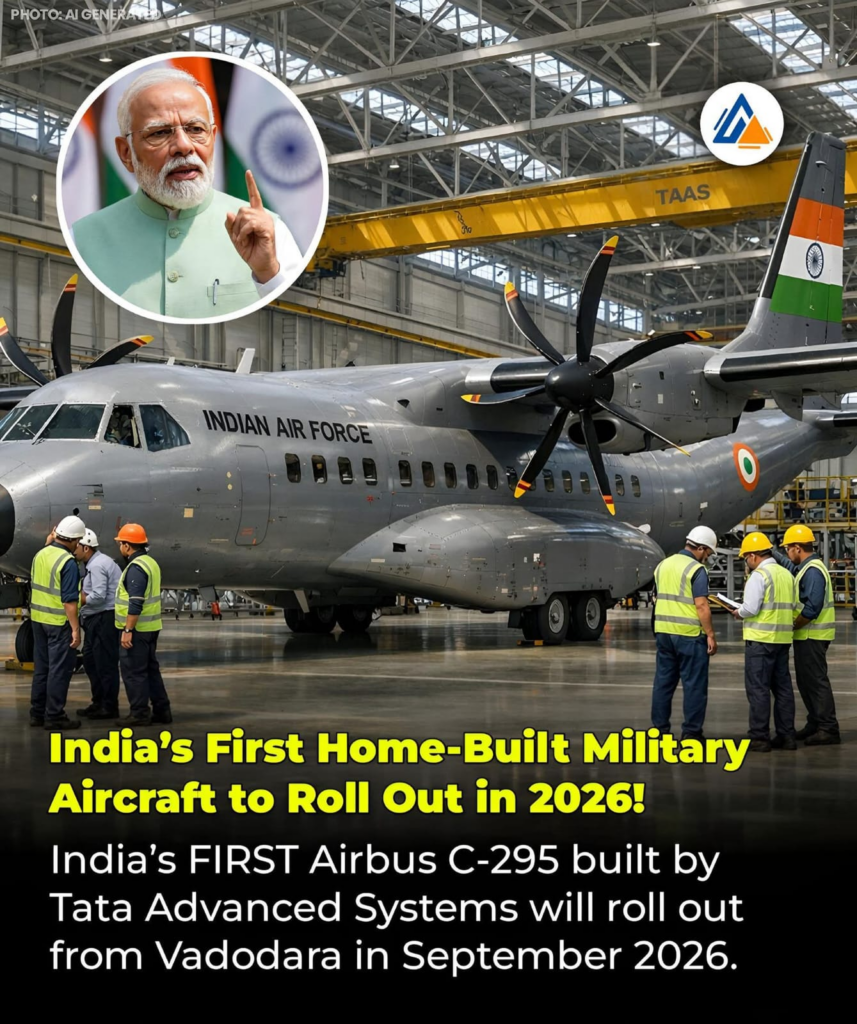 IndiaтАЩs first military aircraft built by the private sector is on track to roll out in September 2026 from Vadodara. The aircraft, C-295, is being assembled in India through a partnership between Tata Advanced Systems and Airbus Defence and Space.