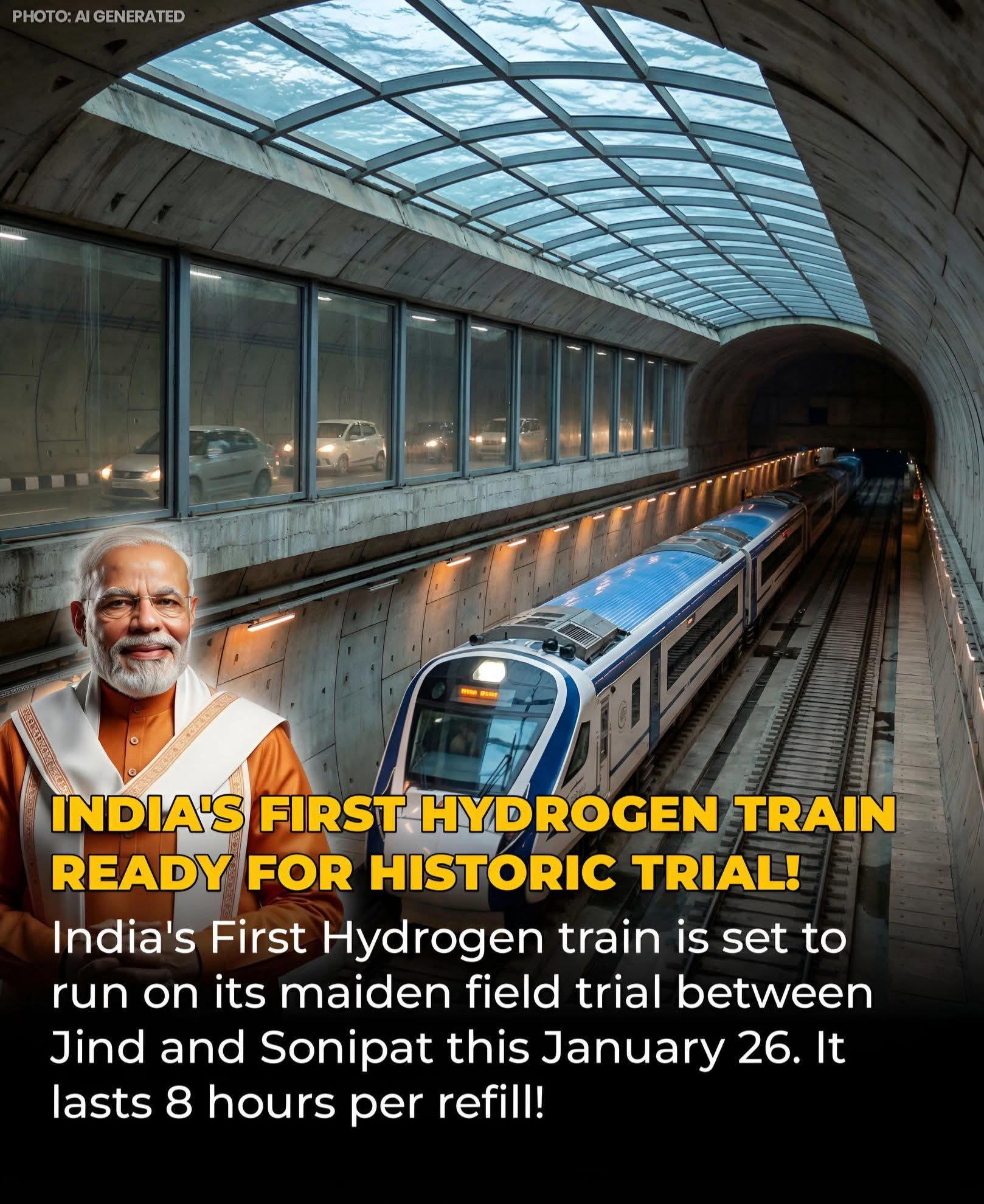 A Big Step Toward Clean Rail in India!India has completed its first hydrogen-powered train and is currently conducting final field trials on the Jind–Sonipat route in Haryana. Built under Indian Railways, the train runs on hydrogen fuel-cell technology and releases only water vapor, helping cut emissions and noise.Once trials and mandatory safety approvals are completed, the train is expected to move closer to regular passenger service.#HydrogenPowered #GreenRailway #CleanMobility #SustainableIndia #FutureReady #NetZeroGoals #EcoFriendlyTransport #RailTech #InfrastructureGrowth