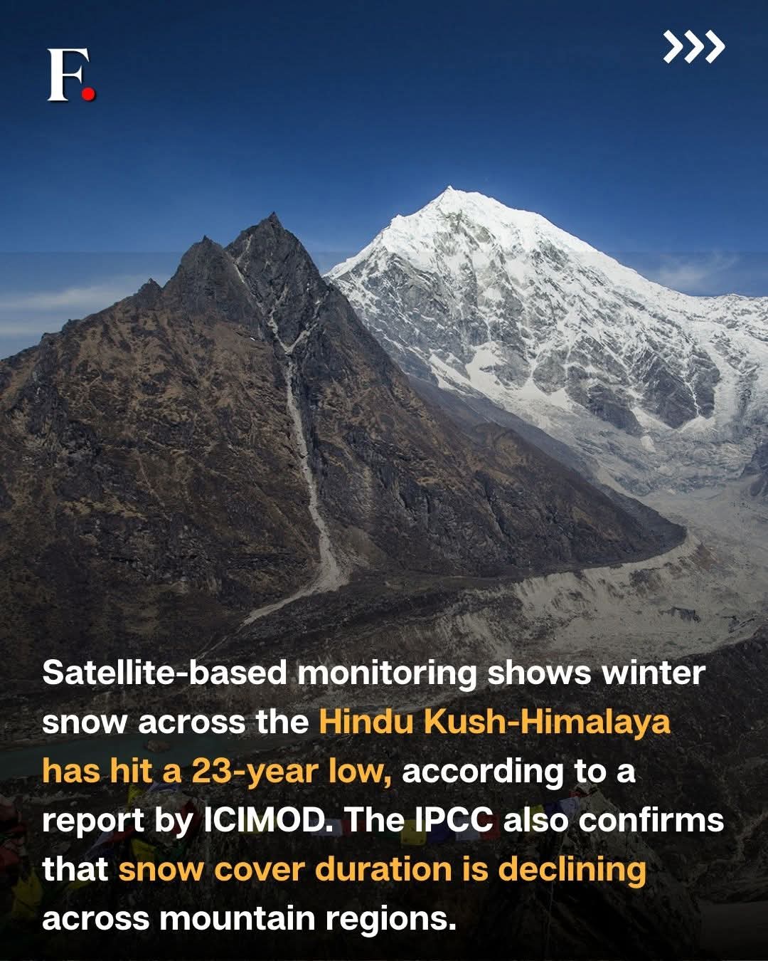 #FirstpostNews: Satellite data from the Hindu Kush-Himalaya shows winter snow levels have fallen to their lowest in over two decades, according to ICIMOD. The IPCC has also warned that rising temperatures are shortening snow seasons across high-mountain regions, turning once-white peaks increasingly bare and rocky.The Himalayas act as Asia’s water tower, feeding rivers that support farming, cities and ecosystems across the continent. As snow declines, so does the stability of this vital water source.