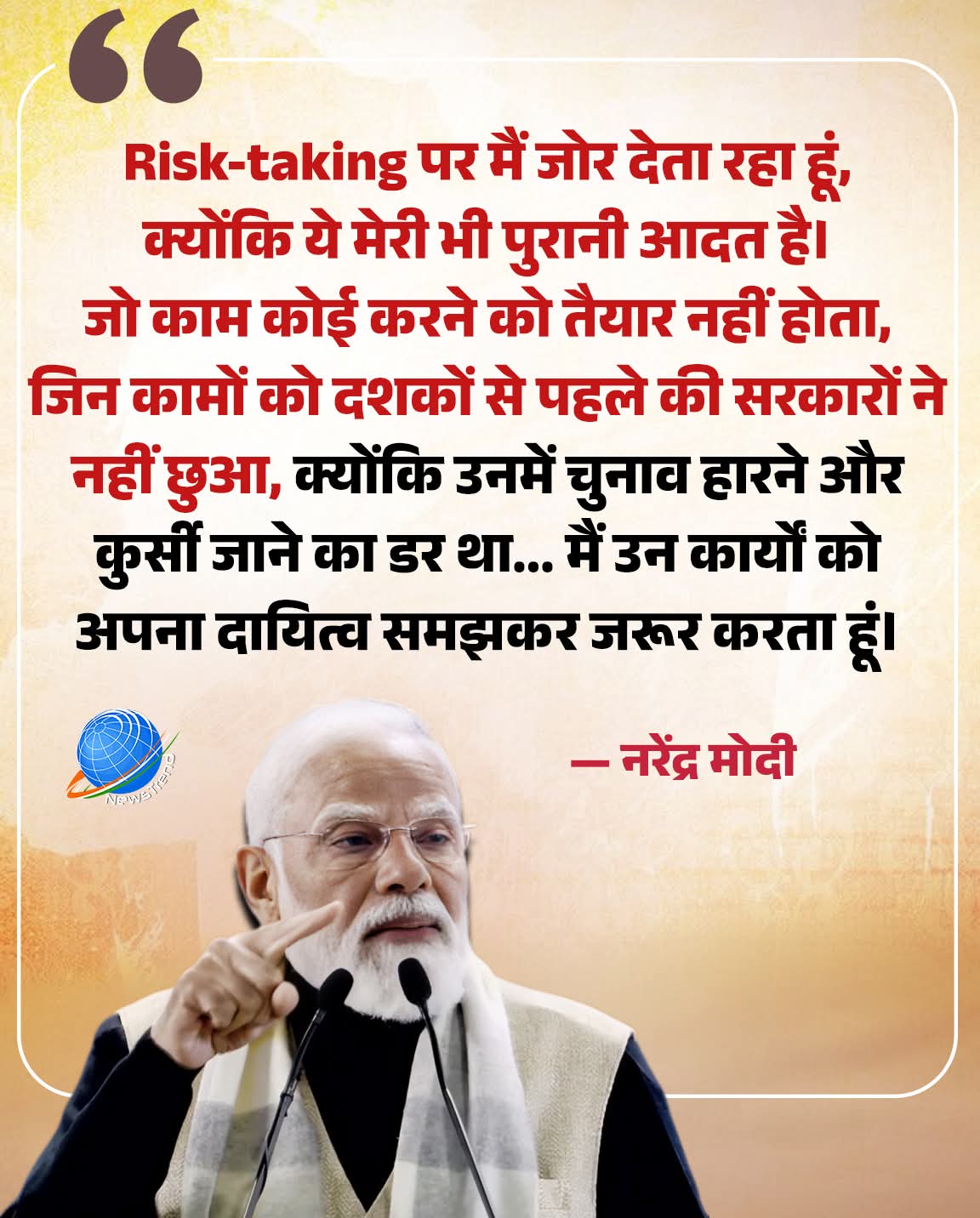 प्रधानमंत्री नरेंद्र मोदी नेअपने नेतृत्व की सोच को लेकरखुलकर बात की है।उन्होंने कहा—“Risk-taking पर मैं जोर देता रहा हूं,क्योंकि ये मेरी भी पुरानी आदत है।जो काम कोई करने को तैयार नहीं होता,जिन कामों को दशकों से पहले की सरकारों ने नहीं छुआ,क्योंकि उन्हें चुनाव हारने और कुर्सी जाने का डर था—मैं उन कार्यों कोअपना दायित्व समझकर जरूर करता हूं।”पीएम मोदी का यह बयानउन फैसलों की ओर इशारा करता हैजो राजनीतिक जोखिम से जुड़े थे,लेकिन देशहित में लिए गए। #NarendraModi #Leadership #RiskTaking #DecisionMaking #IndianPolitics #Governance #Vision #TrendingNews