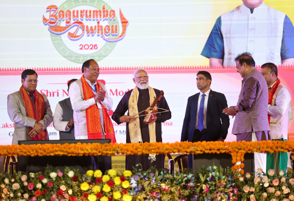 Prime Minister Shri Narendra Modi addresses the Bagurumba Dwhou 2026, a historic cultural event celebrating the rich heritage of the Bodo community at Sarusajai Stadium, Guwahati. Speaking on the occasion, Prime Minister remarked that it has been his privilege to witness Assam’s culture and closely observe the traditions of the Bodo community. Highlighting that no Prime Minister has visited Assam as frequently as he has, Shri Modi emphasised his constant wish that Assam’s art and culture receive a larger platform and gain recognition across the nation and the world through grand celebrations. He noted that continuous efforts have been made in this direction, citing large-scale Bihu festivities, the expression of Jhumoir Binondini, the grand Bodo Mahotsav held in New Delhi one and a quarter years ago, and other cultural programs. The Prime Minister underlined that he never misses an opportunity to experience the unique joy of Assam’s art and culture. He stated that once again, the Bagurumba festival is being organized, describing it as a vibrant celebration of Bodo identity and a tribute to Assam’s heritage. Shri Modi extended his best wishes and congratulations to all those associated with the event, especially the artists.