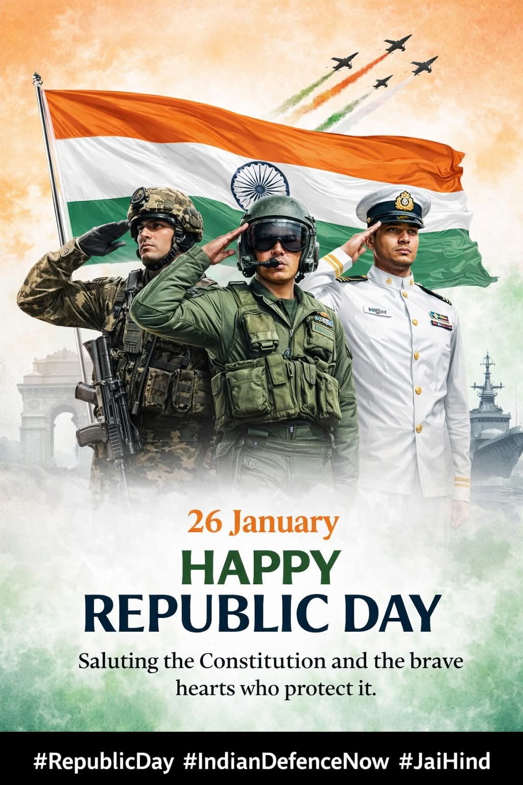 सभी देशवासियों को गणतंत्र दिवस की बहुत-बहुत बधाई। भारत की आन-बान और शान का प्रतीक यह राष्ट्रीय महापर्व आप सभी के जीवन में नई ऊर्जा और नए उत्साह का संचार करे। विकसित भारत का संकल्प और अधिक सुदृढ़ हो, यही कामना है। ….प्रधानमंत्री श्री नरेंद्र मोदी