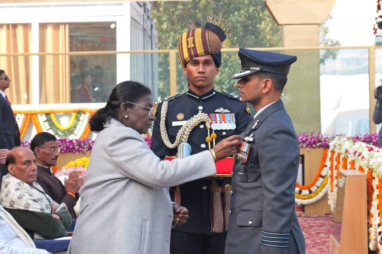 ЁЯЗоЁЯЗ│ On the proud occasion of the 77th Republic Day, HonтАЩble President Smt. Droupadi Murmu conferred the #AshokaChakra, the nationтАЩs highest peacetime gallantry award, on Group Captain Shubhanshu Shukla.