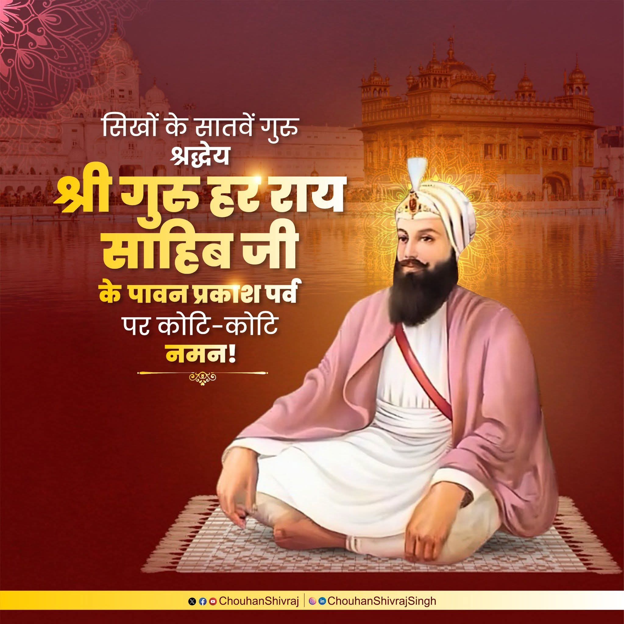 धर्म की रक्षा और मानवता के कल्याण के लिए अपना सर्वस्व न्योछावर कर देने वाले, सिखों के सातवें गुरु, श्रद्धेय श्री गुरु हर राय साहिब जी के पावन प्रकाश पर्व पर उनके चरणों में कोटि-कोटि नमन करता हूँ!