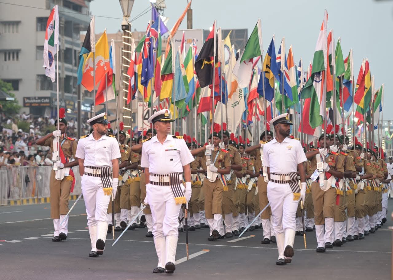 Naval air power overhead, marching contingents on the BeachRoad, bands in perfect harmony – the International City Parade ICP in Visakhapatnam was breathtaking fusion of military precision, culture and maritime heritage!✨