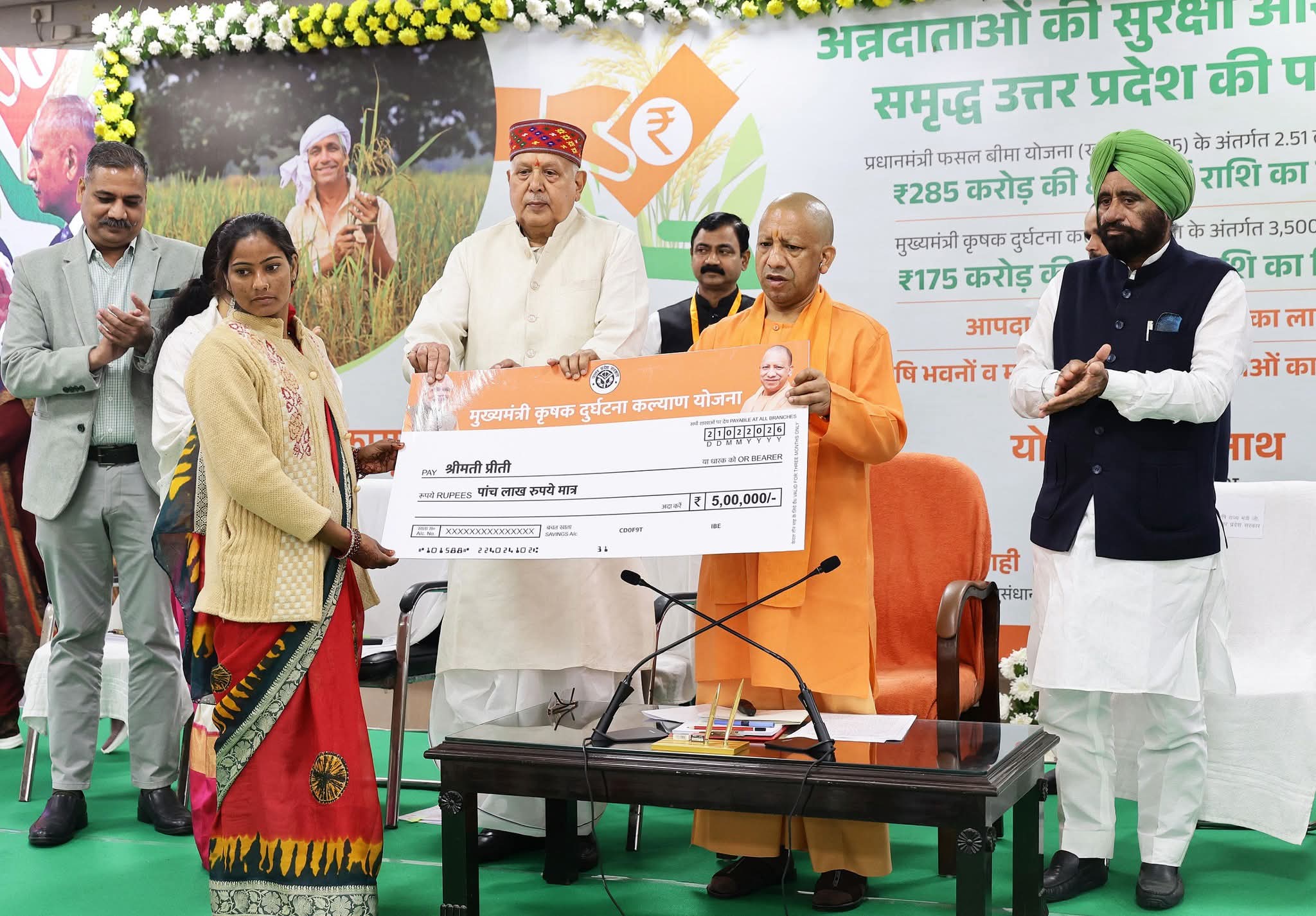 आज लखनऊ में प्रधानमंत्री फसल बीमा योजना (खरीफ-2025) के अंतर्गत 2.51 लाख अन्नदाता किसानों को ₹285 करोड़ की क्षतिपूर्ति, मुख्यमंत्री कृषक दुर्घटना कल्याण योजना के अंतर्गत 3,500 परिवारों को ₹175 करोड़ की सहायता राशि एवं आपदा मित्रों को जीवन बीमा का लाभ वितरण किया।