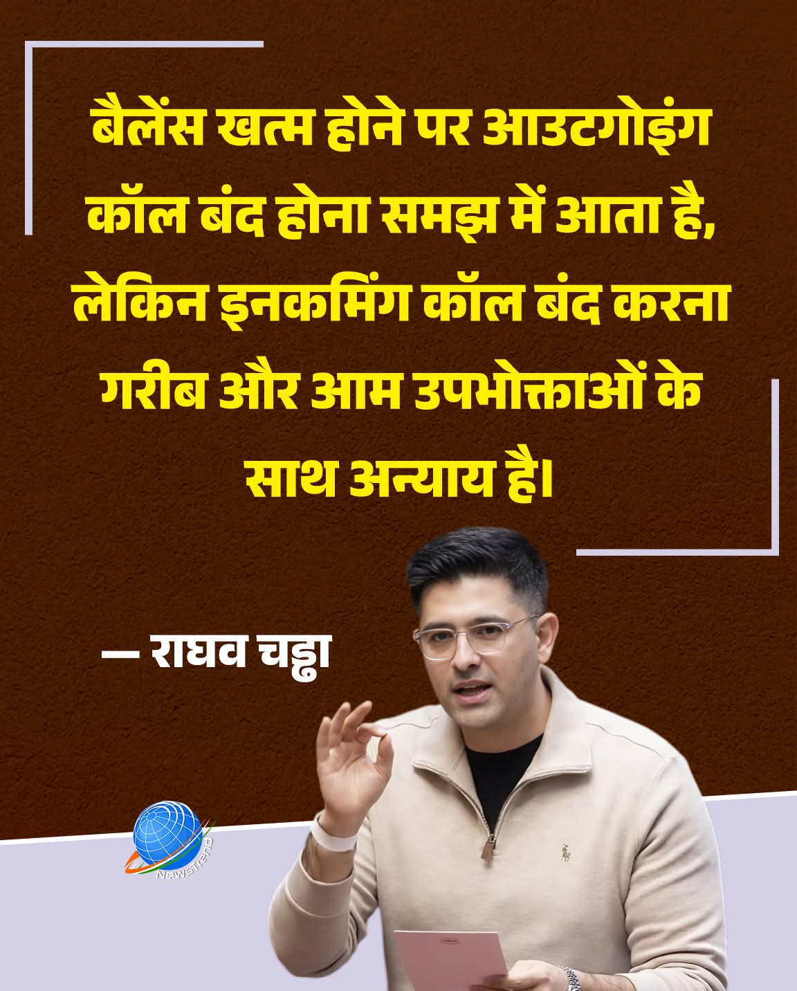 लेकिन इनकमिंग कॉल भी बंद करना गरीब और प्रीपेड यूज़र्स के साथ अन्याय है।राघव चड्ढा का तर्क मोबाइल अब लग्ज़री नहीं,बुनियादी कनेक्टिविटी बन चुका है।सवाल टेलीकॉम कंपनियों से —क्या मुनाफे के लिए आम नागरिक की
