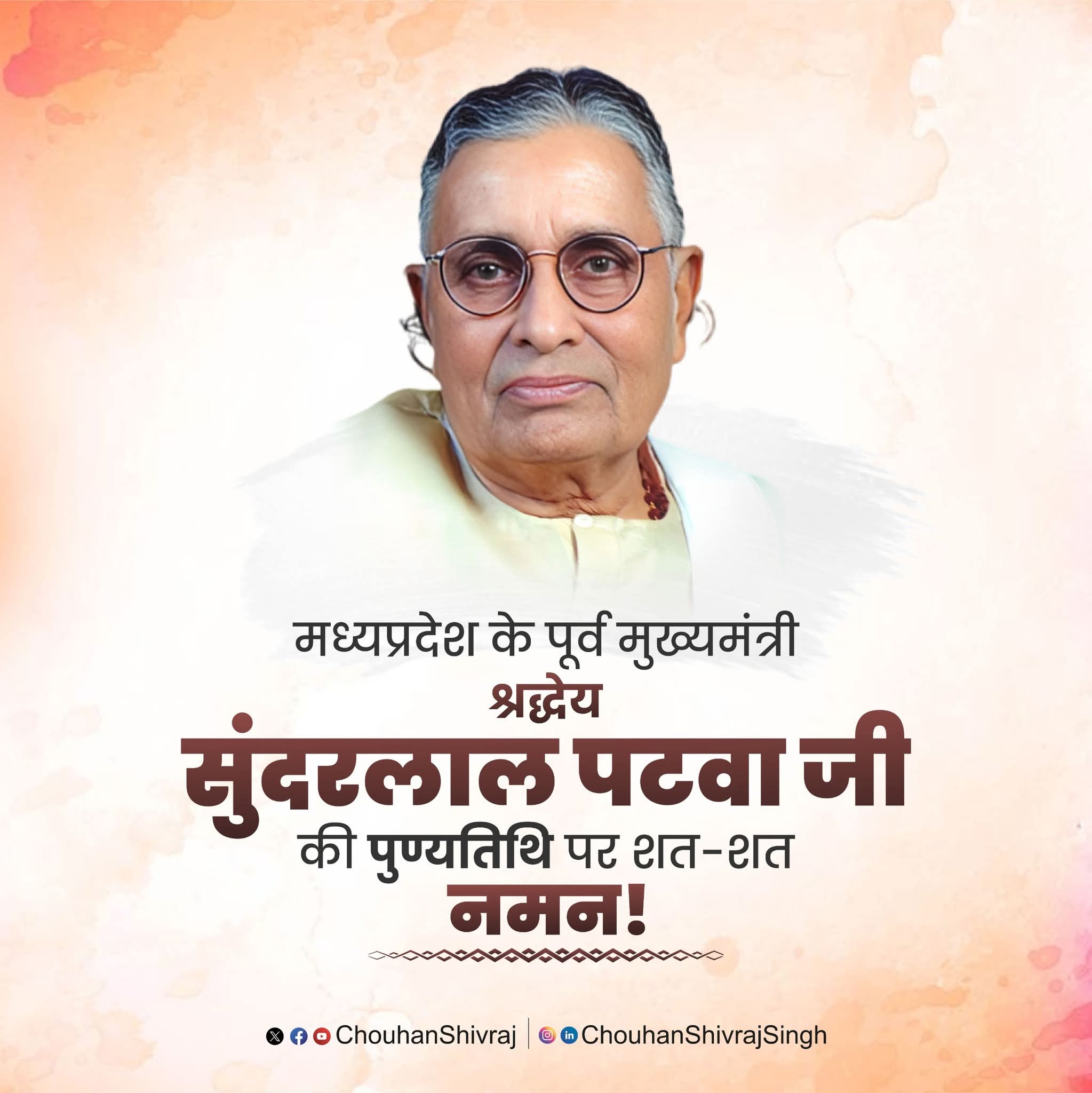 राष्ट्र सेवा और समाज के कमजोर वर्ग के उत्थान के लिए जीवन का हर क्षण समर्पित कर देने वाले हमारे अग्रज, मार्गदर्शक, मध्यप्रदेश के पूर्व मुख्यमंत्री श्रद्धेय सुंदरलाल पटवा जी की पुण्यतिथि पर उनके चरणों में श्रद्धासुमन अर्पित करता हूँ!